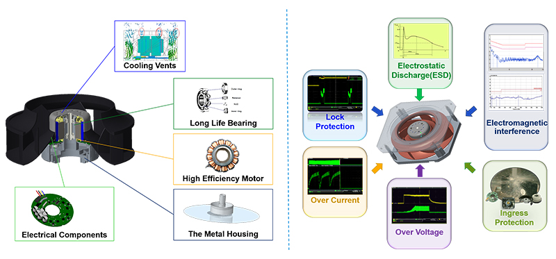 Cooling systems play an increasingly critical role in data center with AI and high computing. Cooling represents the biggest slice of the total cost in a data center. For rack cooling, Delta offers new fan series with high performance and low power consumption. The application of these fans can improve PUE (Power Usage Effectiveness) in data center operations.