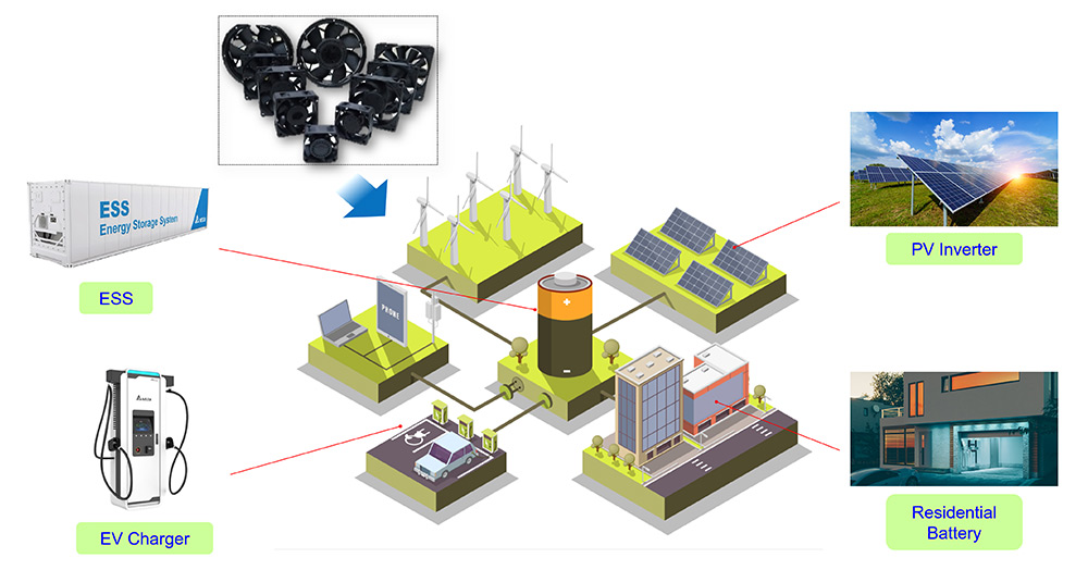 In the face of rapid changes in the environment and the needs for energy conversion, Delta provides fan products for different applications in energy application areas.