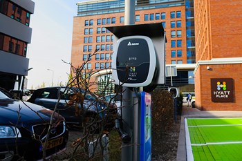 To bring better service to customers, the Hyatt Hotel near Amsterdam Schiphol Airport has installed AC Mini Plus chargers at their parking spaces. This provides charging services for customers staying at the hotel, allowing them to charge their EVs overnight or while eating.
