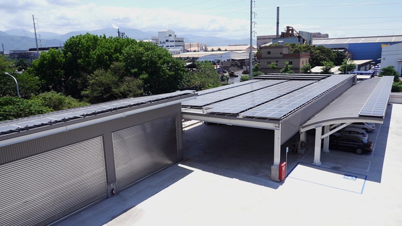 Pingtung has an advantage in the development of PV systems because of its exposure to plenty of sunshine. A PV system can generate electricity at full power with approximately 4.5 hours of sunshine per day. San Shin leveraged the geographic advantage of its Pingtung plant and installed Delta’s PV invert-er beside the plant to set up a 2MW ground-mounted PV facility that can generate power for its commercial operations. A 140kW rooftop PV system was installed on the plant building and parking area to generate renewable electricity for the plant’s waste solvent recycling facilities.