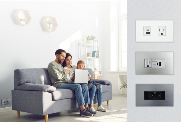 Delta dual port socket outlets offers three models: 20W USB-A+C, 60W USB-A+C, and 60W USB-C+C. These socket outlets can be installed in residential areas and public spaces such as airports, coffee shops, and offices. Users can easily charge cell phones, smartwatches, tablets, and even laptops with one cable only. The two 60W models feature a modular design, which allows AC ports to be retained partially or to be replaced completely while the 20W Asian model can be accommodated with 2 AC ports. The USB ports adopt the PD charging protocol to allow fast charging from 0 - 50% for iPhone 15 large-capacity models within 30 minutes. The 60W types can even support direct charging for notebooks with the Type-C port. The socket outlets also feature 92% efficiency, meaning when consuming 100W electricity to charge mobile devices, only 8W will be wasted during the process, lowering unnecessary power loss.