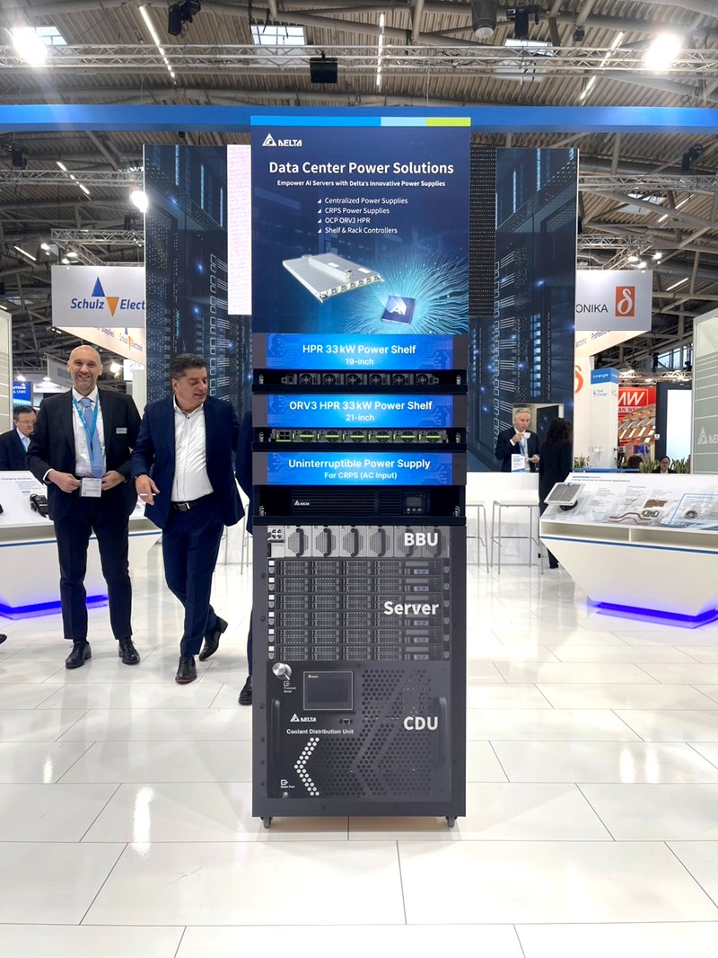 With the significant increase in demand for AI servers, Delta showcased the 19-inch 1RU 33kW Power Shelf. Using advanced power technology, the new 1RU power shelf manages to deliver 33 kW power and 97.5% efficiency and reduces dimension from 21 inch to 19 inch. Delta also presented an Online UPS system with a 2,700W output power. Its rack-mount form factor makes it an ideal backup power for server racks. It provides more than 10 minutes of backup power at half-load and sustains power for 3 minutes at full load.