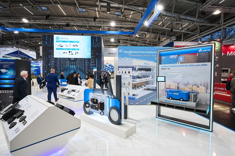 For unmaned industrial vehicles such as AGVs and AMRs, Delta presented contact and contactless charging systems for industrial electric vehicles , including the M∞Vbase stationary charging system and the M∞Vair Wireless Charging Systems. The former features customized power supplies with three power module slots while the later’s 1kW and 3.3 kW models enable users to realize fully automated, maintenance-free smart logistics operations.