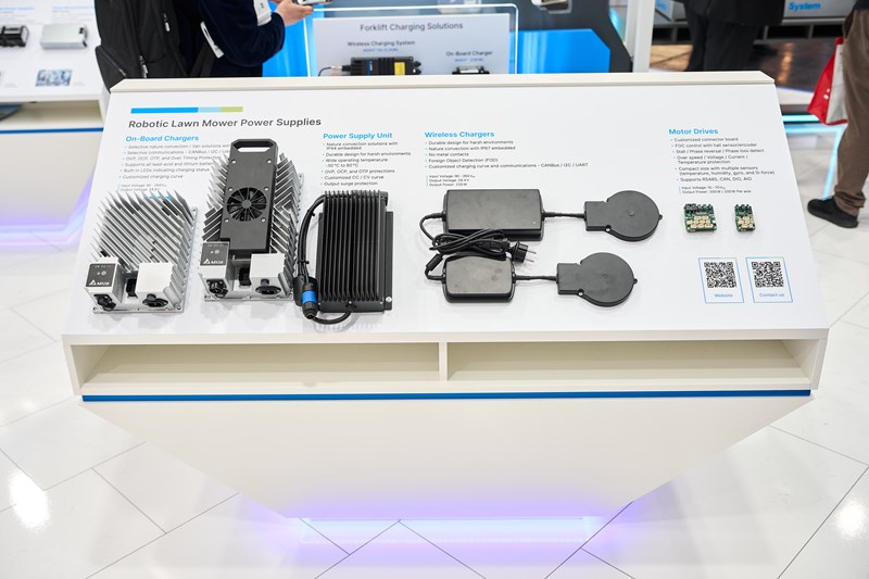 As E-mobility becomes trending, Delta also presented a series of power products for robotic lawn mowers and two-wheel e-vehicles. The lawn mower power solutions included the 235W wireless chargers with IP67 rating, ideal for harsh outdoor environments. The charging solutions for two-wheel e-vehicles indluded onboard chargers, DC-DC converters and others. They also featured up to IP67 rating to ensure stable power supply.