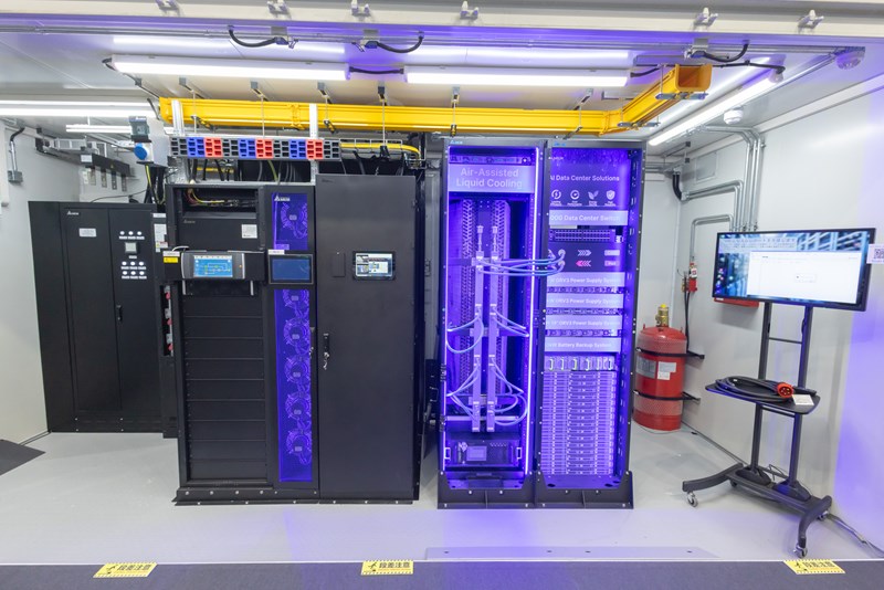 As AI technologies continue to innovate and develop, data centers are becoming the core focus for industry insiders. This year, Delta exhibited its newest prefabricated all-in-one data center solution, which integrates data center infrastructures and IT equipment into a 20ft container. The solution integrated the 21-inch ORV3 1OU 33kW power shelf and the 19-inch 1RU 33kW power shelf. The latter is specifically designed for the NVIDIA’s Blackwell platform, which reduces its volume from 21-inches, 1OU ORV3 standard to 19-inches, 1RU footprint without sacrificing the 33kW high power output and 97.5% power conversion efficiency. The outstanding customization capability offers flexible scalability to meet the rapid deployment of data centers in Japan.