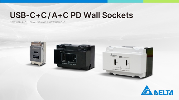 Delta also introduced three models of 20W and 60W USB PD Type A+C or Type C+C sockets. The modular design seamlessly integrates with AC outlets in Japanese households, providing single-port output efficiency of up to 92.4%. In addition, four PD Series adapters with a common type C port feature output power ranging from 65W to 240W, all compliant with EU REACH regulations, RoHS, WEEE directives. The lineup includes a wall-mounted adapter suitable for laptops and electric scooters and a rare high-power 500W adapter, applicable for use in desktop computers and larger home appliances with its high-power density.