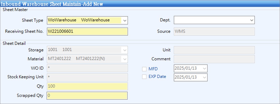 - Set inspection items based on material specifications to ensure quality and quantity accuracy