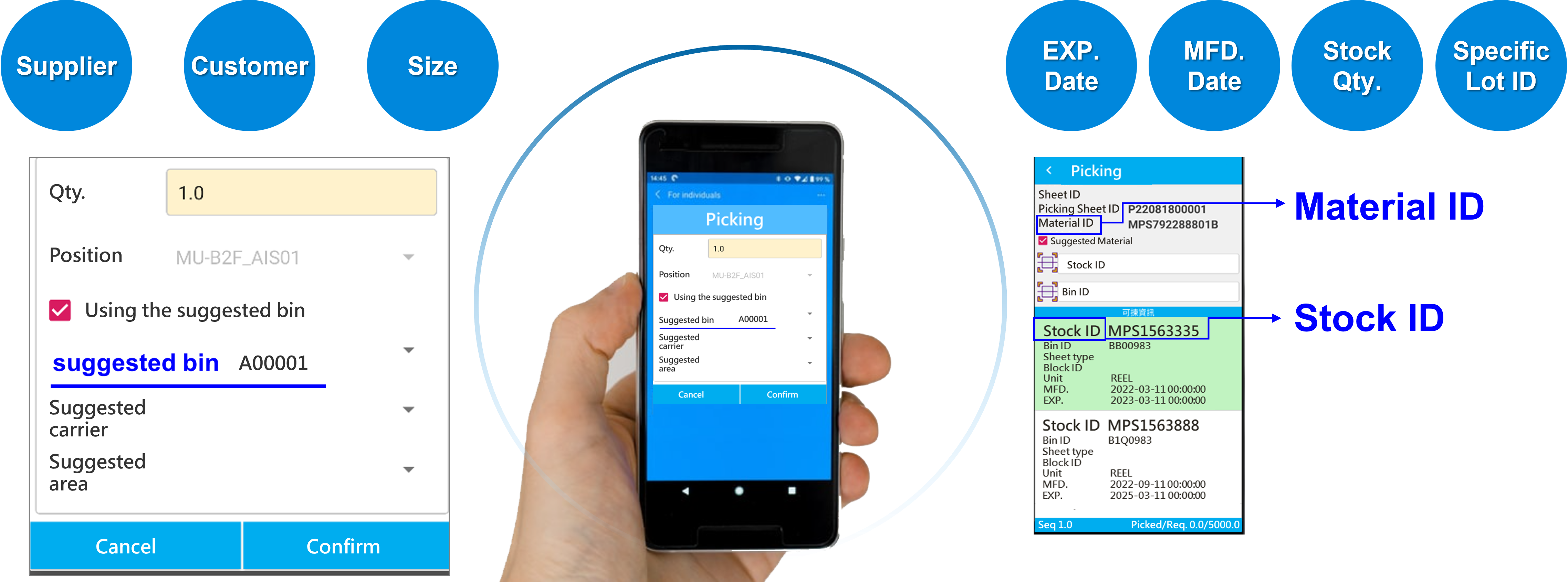 - Automatically filters materials by expiration dates or batch rules to ensure production accuracy