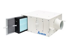 Delta Electronics FRESH AIR SYSTEM intakes the outdoor air, and then filters and purifies the air efficiently before delivering air to the indoor space. Meanwhile, the system can exhaust the indoor stale air to the outdoors, achieving the whole-house ventilation. Users can obtain high-quality fresh air, even when the whole room is enclosed and airtight.